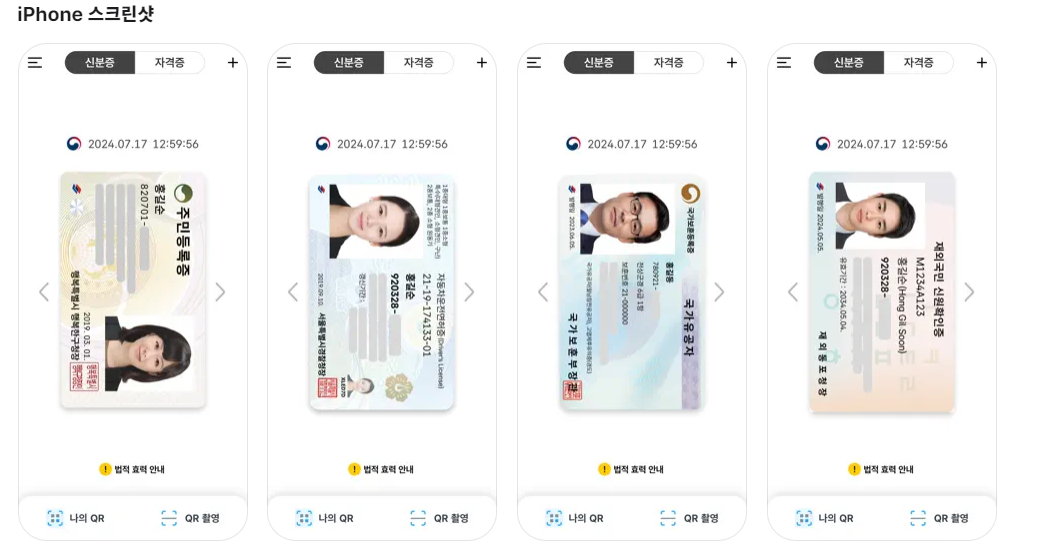 오프라인에서는 경찰서, 은행, 공항 등에서도 정식 신분증으로 인정됩니다.